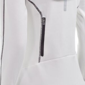 • White full zip hoodie with gray detail.